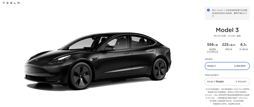 11月19日,特斯拉中国官网显示,国产Model 3后轮驱动版售价上调1.5万元至25.09万元,续航也从原先的468公里(NEDC工况)提高至556公里(CLTC工况),百公里加速则由5.6秒降至6.1秒。