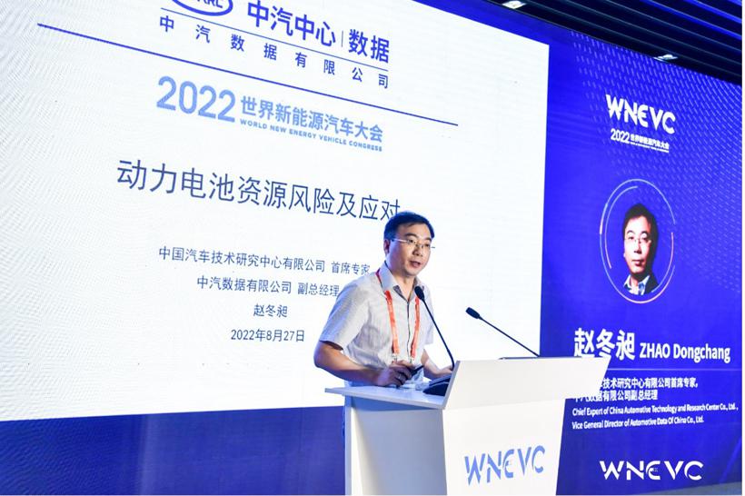 其中,在8月27日举办的专题论坛:“动力电池原材料保障与回收利用论坛”上,中国汽车技术研究中心有限公司首席专家,中汽数据有限公司副总经理赵冬昶发表精彩演讲。