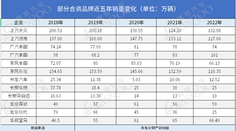像上汽大众、一汽-大众、上汽通用这样的合资品牌,巅峰期年销量都在200万辆以上。东风日产、一汽丰田、东风本田、北京现代等也都是百万量级。即使是广汽菲克、长安马自达等品牌,年销量也都超过20万辆。而自主品牌中,仅有吉利、长城、长安少数几家努力奋斗后,近几年销量才达到百万辆。