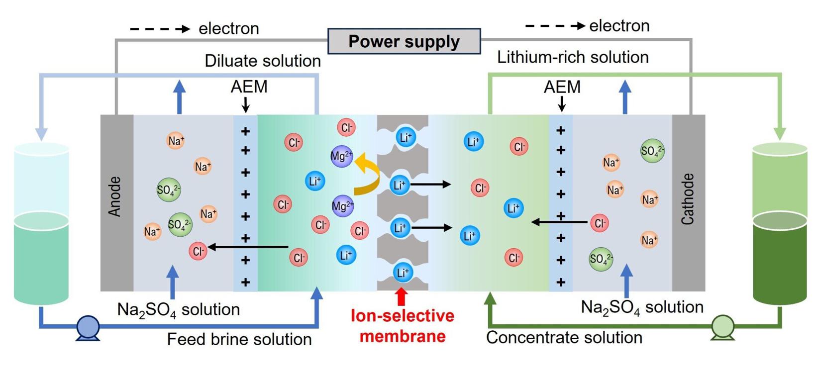 传统的从盐水中提取锂的方法需要数月时间,并且要使用大量的水和化学物质,因此会产生温室气体排放。化学工程系的宋启磊博士及其团队开发的替代方法是使用一种膜,通过微小的孔隙过滤盐水,从而将锂从盐水中分离出来。