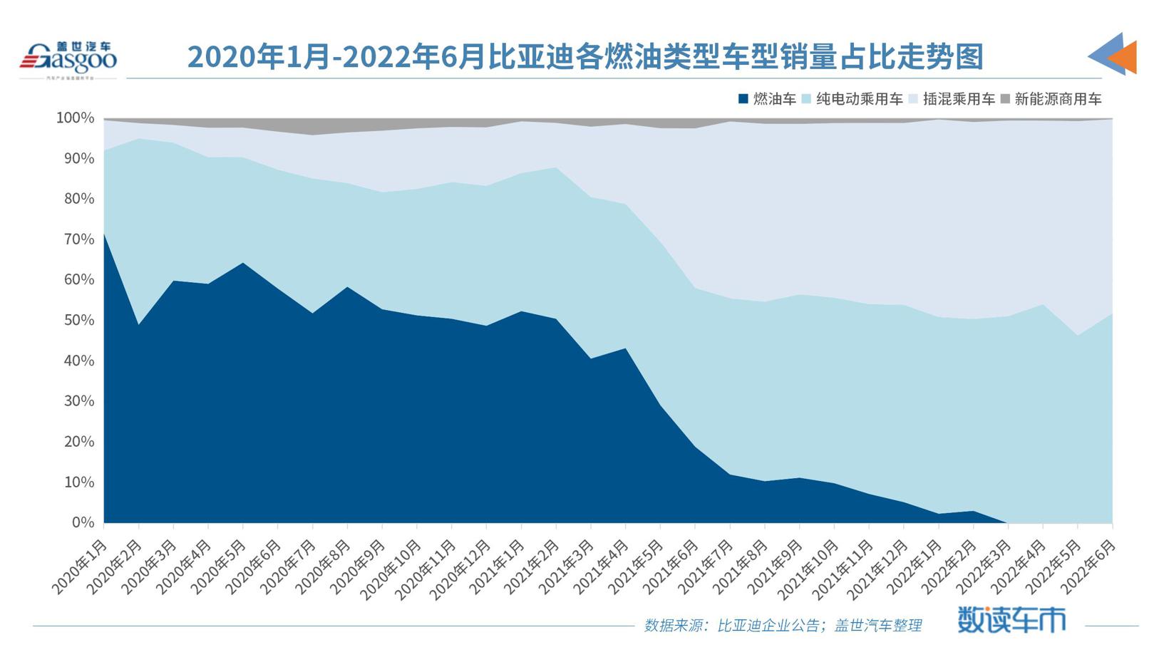 6月,比亚迪EV乘用车及DM混动乘用车分别销售69,544辆和64,218辆,占集团新能源乘用车总量的51.99%和48.01%,EV乘用车再度以过半的占比回归主位。