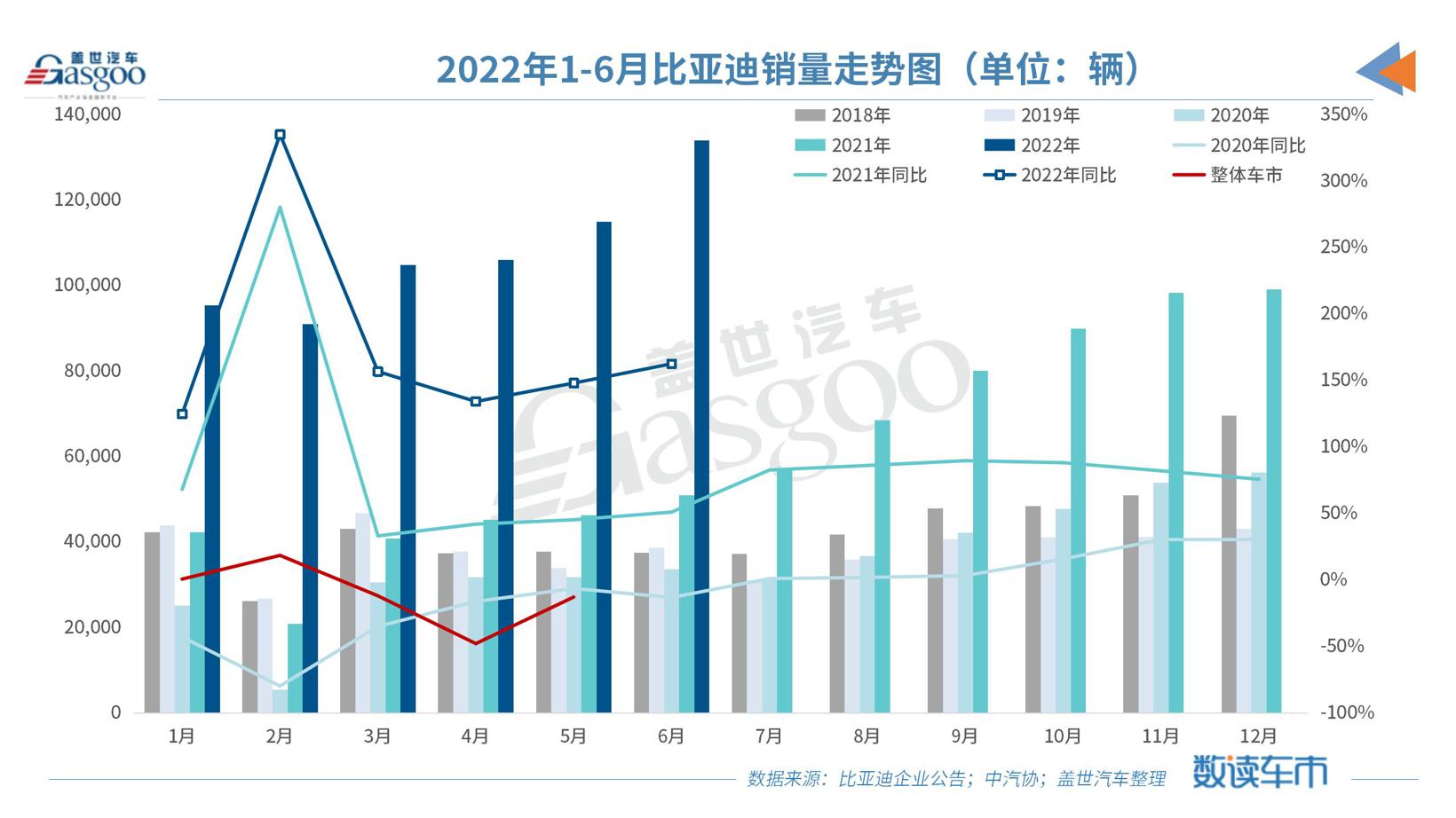 至此,2022年上半年比亚迪累计销售新车646,399辆,同比增长162.03%。