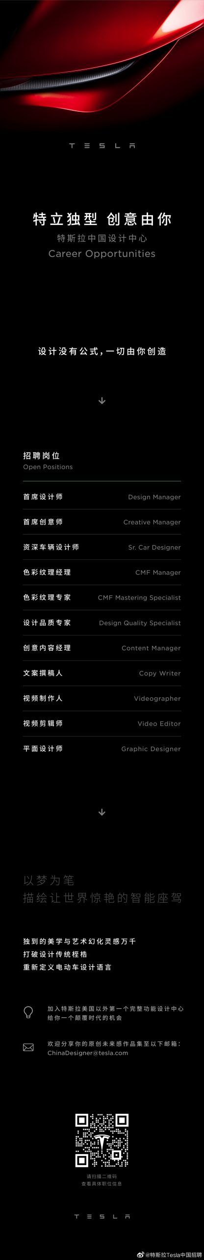 (特斯拉中国设计中心招聘广告;来源:特斯拉中国招聘官方微博)